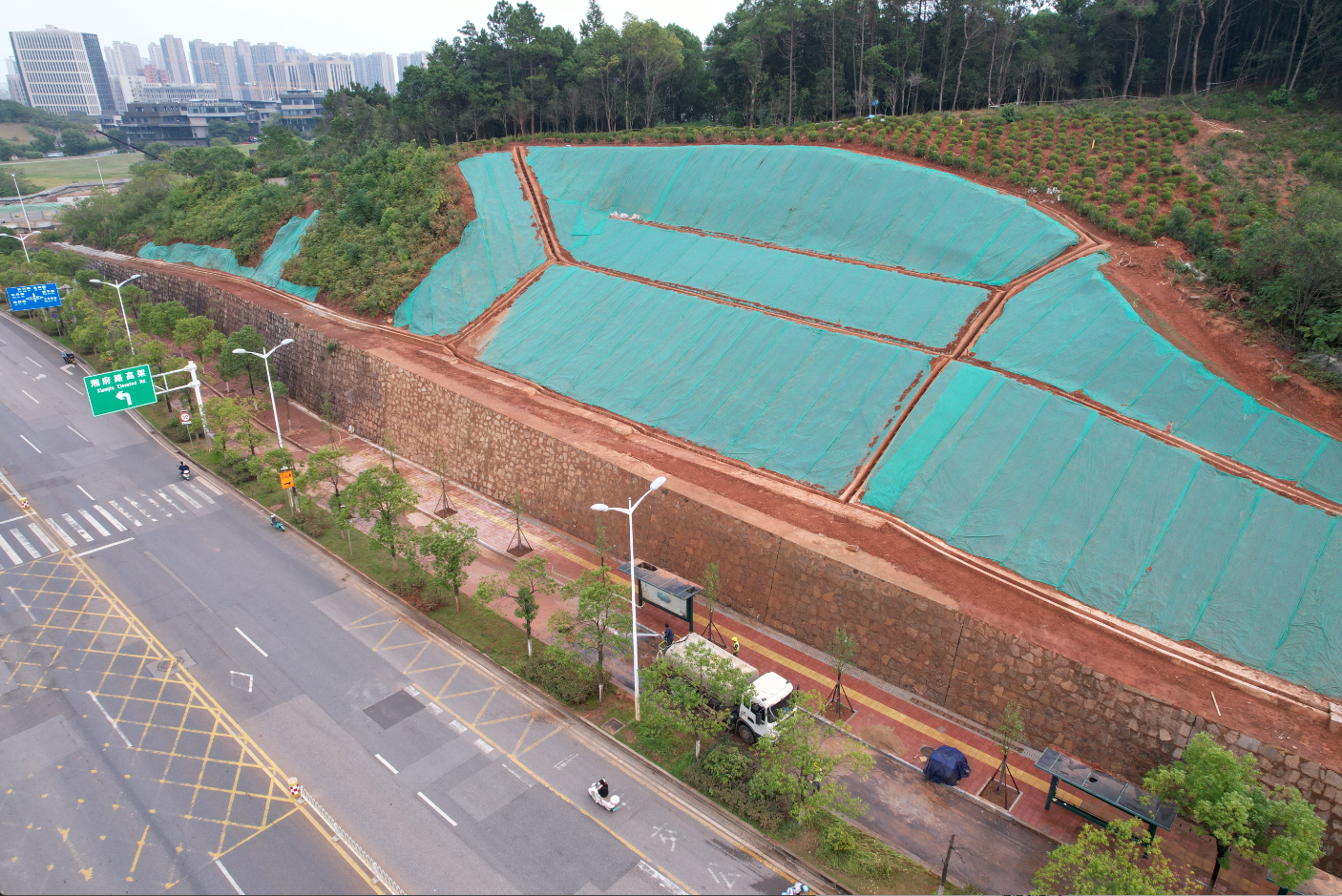 该修复工程自2025年4月12日开始施工,至2025年9月30日完成竣工验收,工程累计清理塌方土石方7000m3,砌筑挡土墙500m3,边坡植草2800m2,并于坡顶种植杜鹃树1000株,实现了工程治理与生态修复的结合。目前,该路段辅道及人行道已全面恢复正常通行。