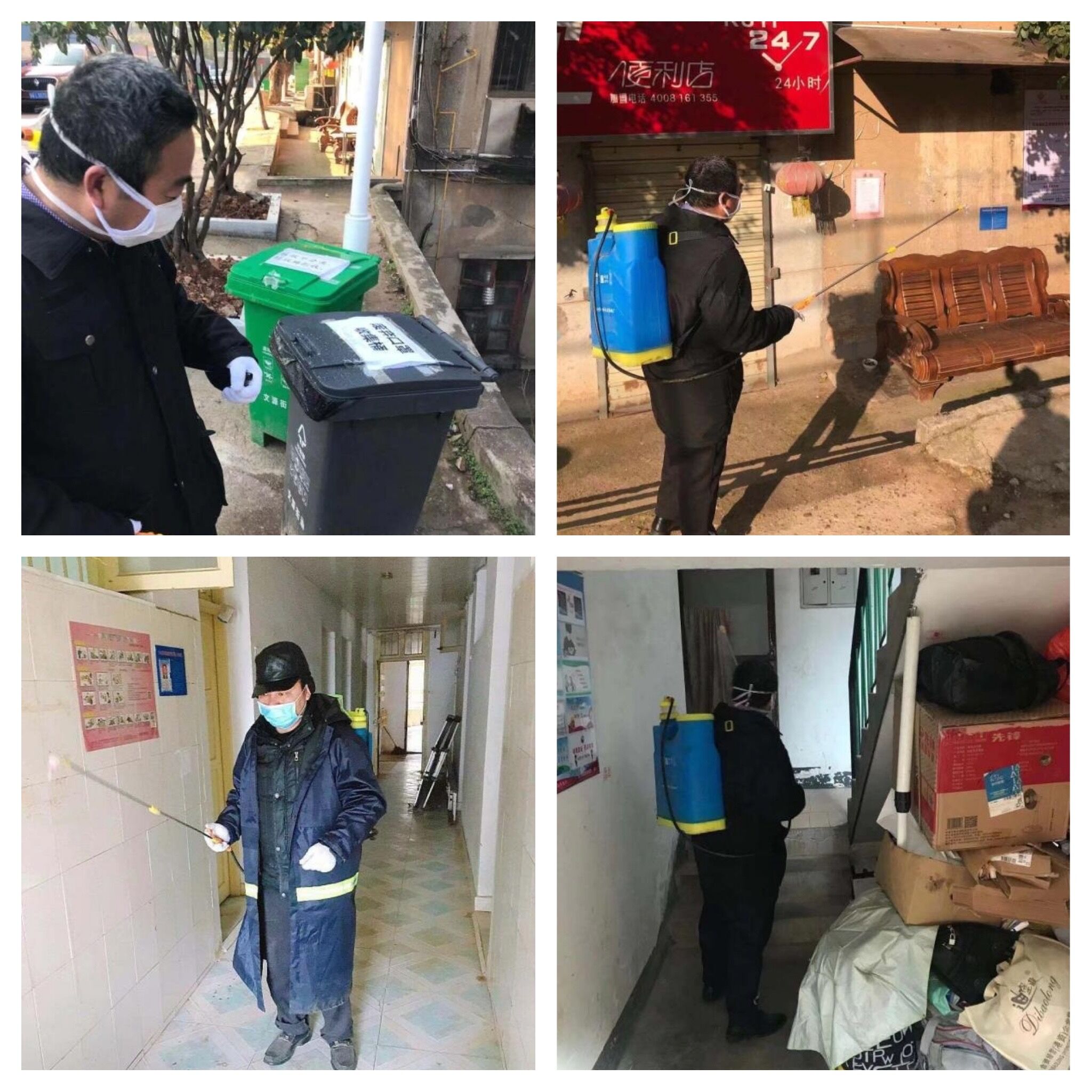 连日来,我院基地办同志协助湘诚物业管理公司担当起对基地疫情防控的重任,他们值守备勤,对基地大门口、住宅楼楼梯、垃圾桶等公共区域,按最严的标准以最细的措施进行消毒保洁,确保公共场所卫生整洁,减少病毒传播,对出入基地人员严格管控并进行体温检测,确保节日期间基地住户平安健康。