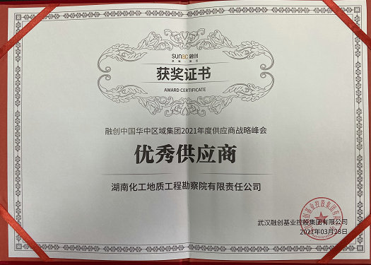 3月28日,我院受邀参加融创华中区域集团2021年度供应商战略峰会。我院喜获融创中国华中区域集团“优秀供应商”荣誉称号,工勘院二公司“长沙会展上东区项目团队”荣获“优秀项目团队奖”。