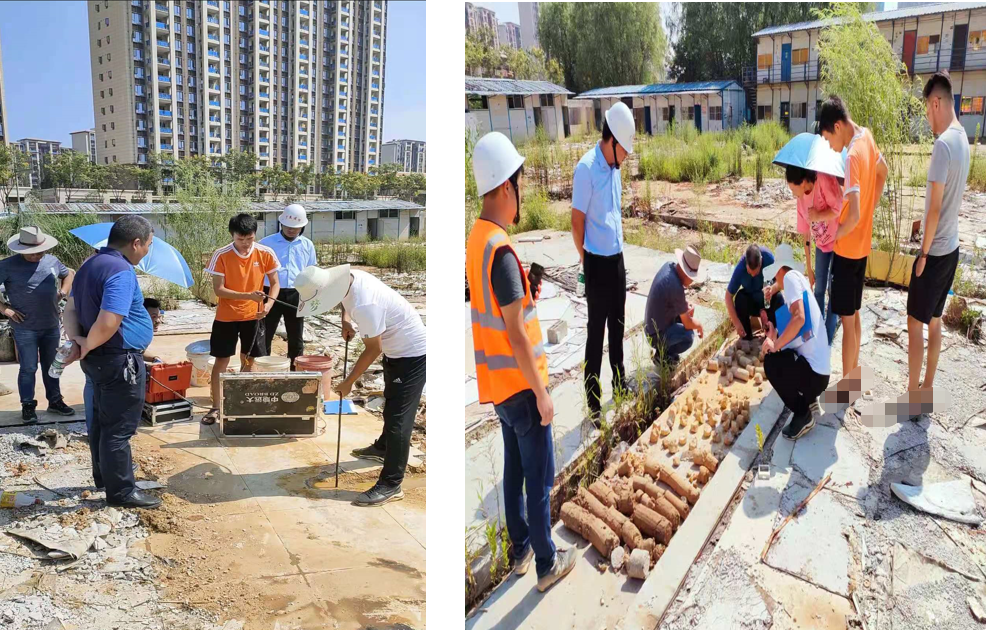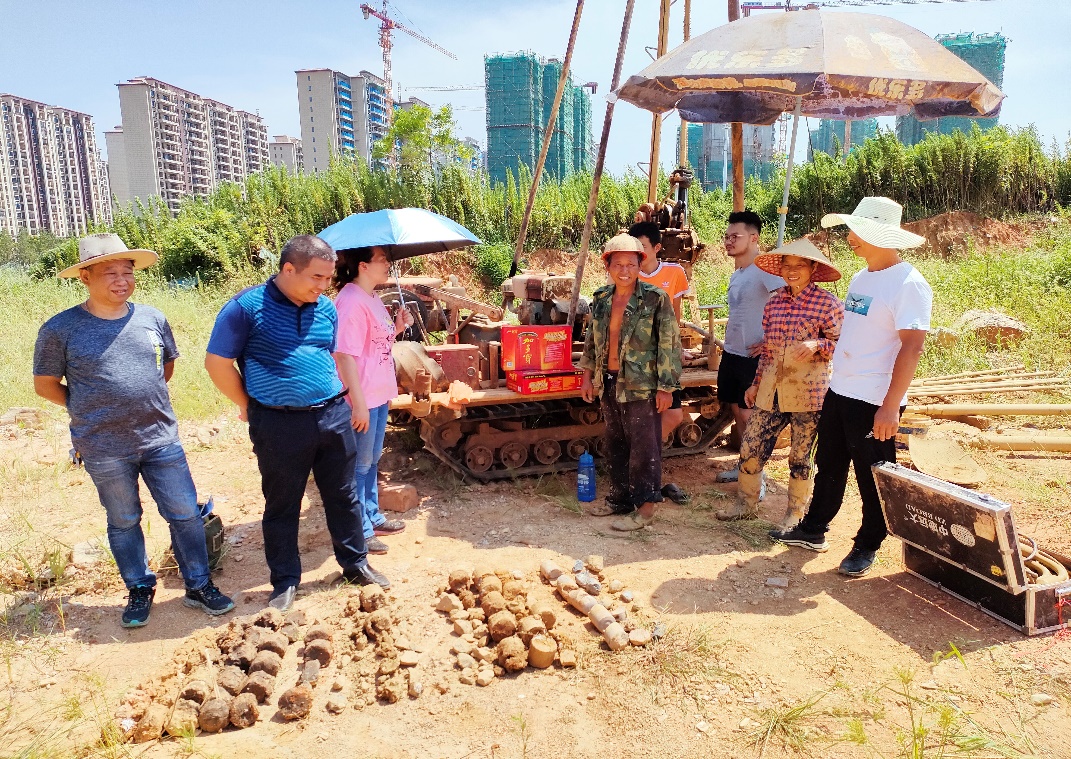 9月4日上午,中化湖南院第四党支部二公司党小组成员黄明艳(支部副书记、二公司主任工程师)、尹建明(二公司副经理)、邹品强(二公司副经理)一行赴岳阳碧桂园凤凰城3#地块项目现场进行安全检查和技术指导,并为在现场辛苦施工的钻机师傅送去了清凉物资和关怀。